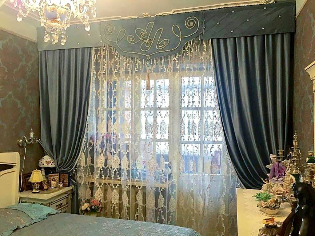 Это портьеры в пол. Они имеют ненавязчивый рисунок или принт, сшиты из дорогих натуральных тканей. Такие изделия универсальны. Их вешают в гостиную или спальню. На реальных фото штор классического типа не всегда отображены тяжелые, громоздкие портьеры.