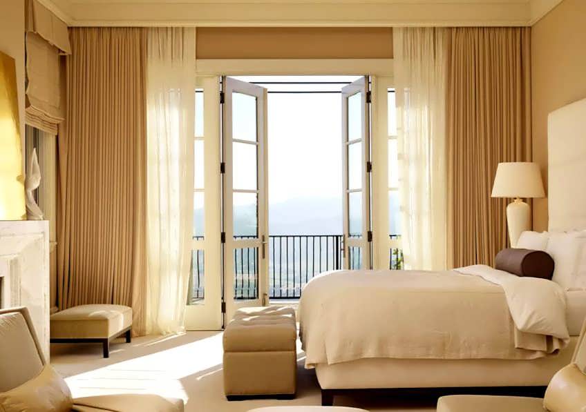 Здесь придется учитывать много деталей стиля и цветового оформления комнаты, обязательно обращать внимание на характеристики и структуру ткани. Грамотно выбранные шторы делают дизайн спальни завершенным, придавая ему законченность и уют, создают условия для спокойного сна, безмятежного ночного отдыха