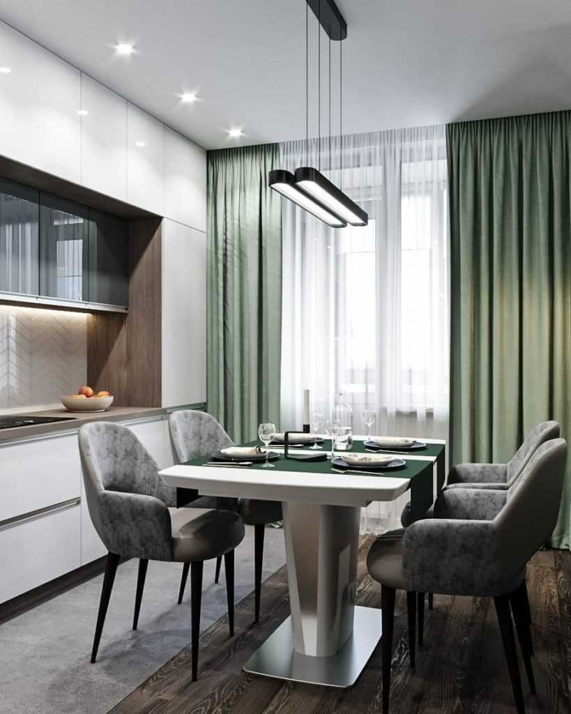 К классическому типу штор относятся гардины, которые подходят для оформления кухни с балконной дверью. Гардины хорошо смотрятся в сочетании с разными тканями. В 2021 году дизайнеры советуют заменить классические тюлевые шторы с рисунками светлой органзой.