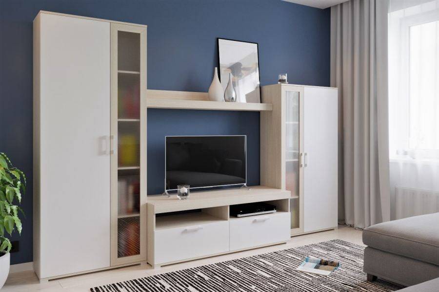 конфигурация. Как уже говорилось выше, существует большое разнообразие моделей стенки для гостиной. Поэтому лучше выбирать наиболее подходящий вариант, исходя из особенностей помещения. К примеру, прямая стенка идеально дополнит гостиную прямоугольной формы. В свою очередь, угловая конструкция сэкономит пространство и поможет рационально использовать угол.