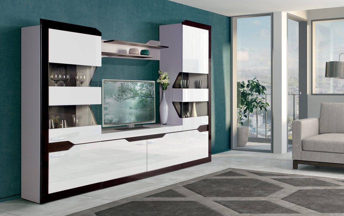 Современная корпусная мебель для гостиной не декорирована, ее очарование заключено в простоте. Единственным украшением является блеск. Здесь нет места для броского декора, лепнины, антиквариата, пушистых ковриков или кружева. Современная мебель для гостиной впечатляет своей формой и пропорциями. Здесь четко вырисовывается последовательность — простота видна в каждом элементе.