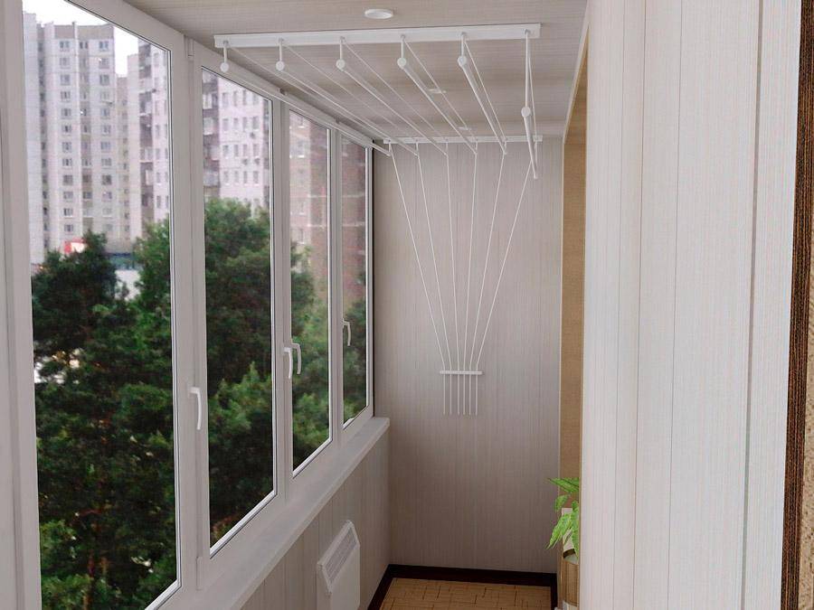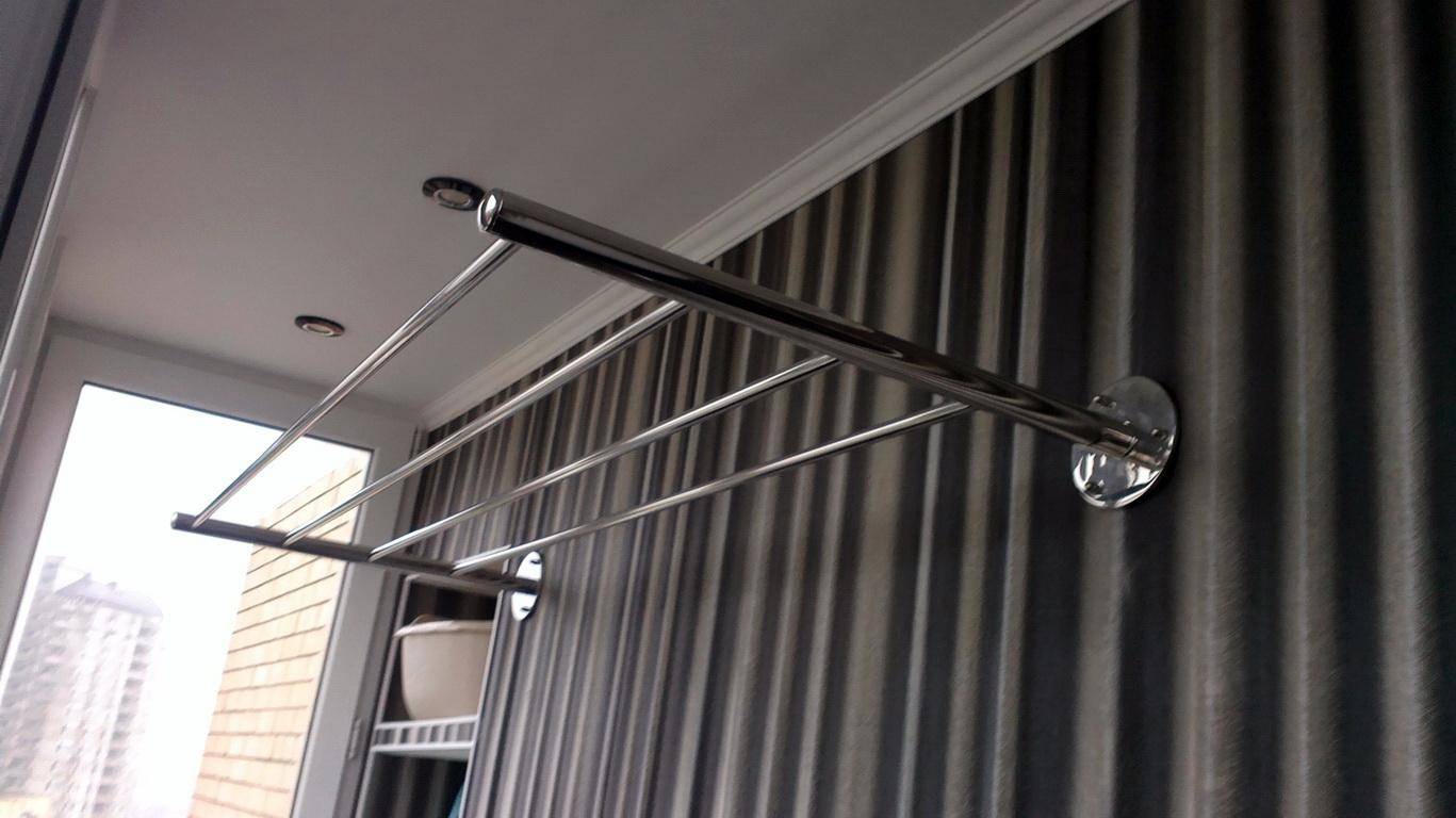 Монтировать устройство нужно с учётом механизма открывания окон в лоджии или застеклённом балконе. Просчитать этот момент нужно, чтобы понять, будут ли открытые окна задевать белье, и останется ли свободное место для прохода.