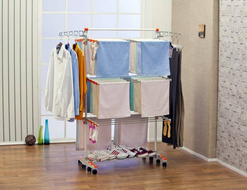 - компактное устройство для сушки белья, не мешающее передвижению;