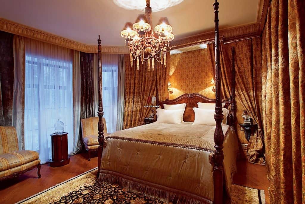 Большое внимание уделяется деталям. Резные ножки, золоченые рамы и кованые элементы добавляют дизайну комнаты аристократического благородства с легким налетом едва уловимой роскоши