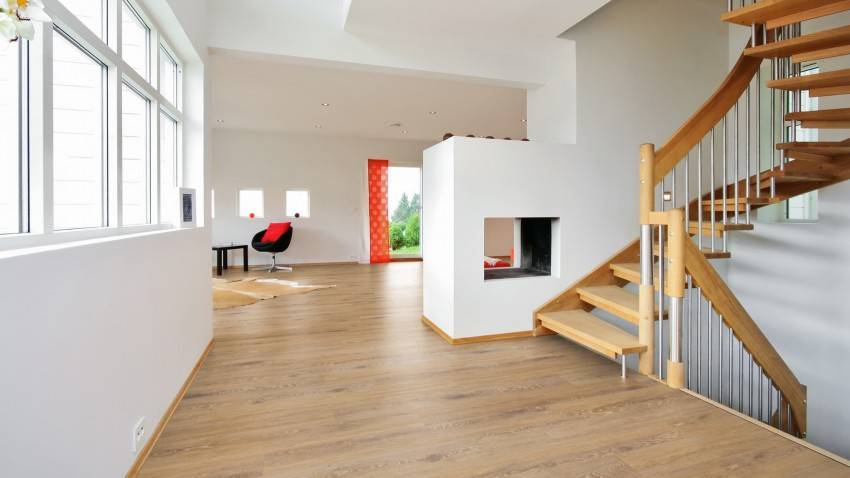 Для создания светлого пола есть возможность использования множества различных материалов. Так, к примеру, одним из самых распространённых вариантов является светлый ламинат в интерьере, а увидеть как он выглядит вы можете на следующих фото. Однако, профессионалы не рекомендуют стелить данный материал в рабочей зоне кухни, так как он не практичный для данного помещения. Напротив же, для кухни лучше всего использовать светлую плитку на пол. Её будет легко отмывать от загрязнений, которые так часто появляются в зоне кухни.