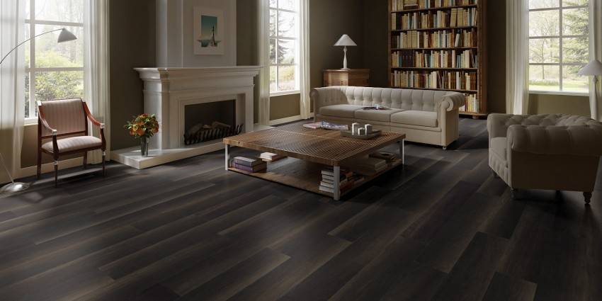 Угольно-чёрный пол в современном интерьере занимает немаловажное место, так как изумительно смотрится в сочетании со светлыми (или даже белоснежными) стенами и потолком. Данный окрас активно используется во всех дизайнерских стилях и способен подчеркнуть облик любого помещения.