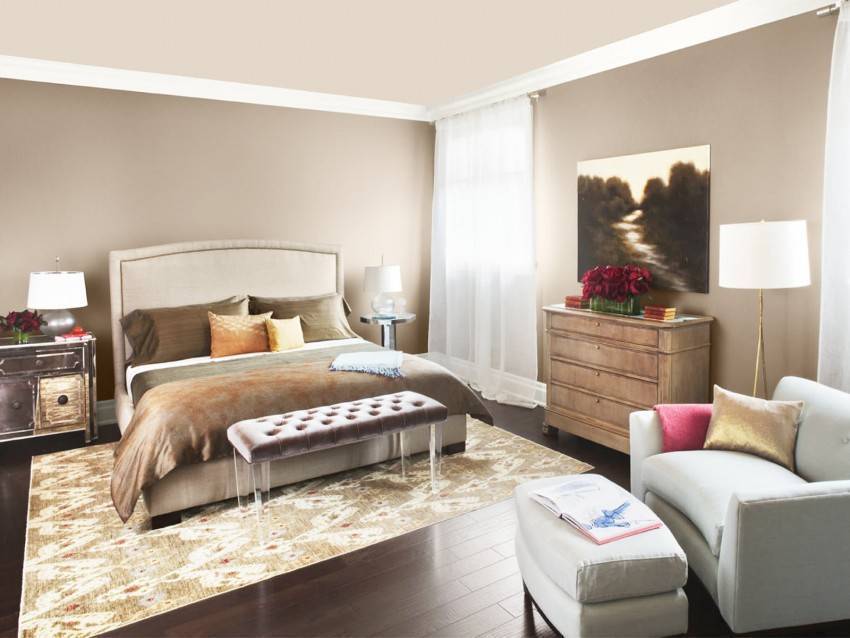 - Светлый пол и стены дают ощущение простора. Но, слишком много света – и комната потеряла любые очертания. Она не превратилась в просторное помещение, а стала бесформенной, огромной, даже холодной комнатой. При сочетании светлого со светлым, оттенок одного из элементов должен отличаться. Например, пол молочного цвета, стены – белые. Или стены персикового цвета – пол светло-коричневый, на два тона темнее стен.