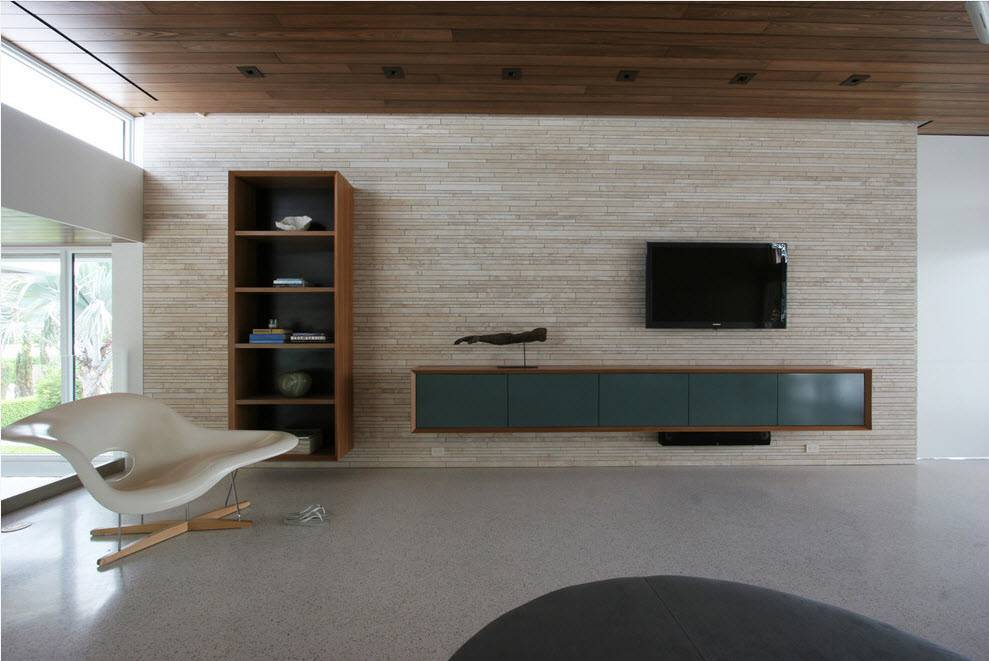 - Телевизор встроенный в мебель. Благодаря огромному выбору мебельных конструкций в виде тумбы, шкафов, стенок и стеллажей, получается создать по-настоящему комфортную и функциональную тв-зону.