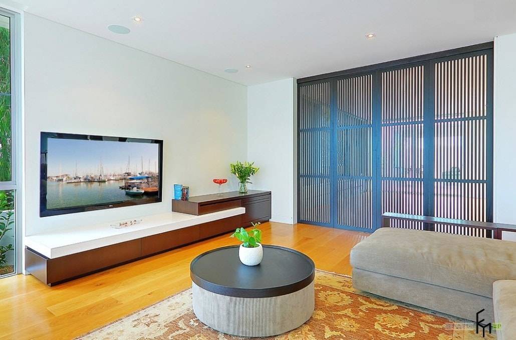 Один из самых распространенных современных стилей оформления интерьера комнат. В разрезе прямых линий и четких геометрических форм стиля, плазменная панель отлично подходит для создания четкой композиции.