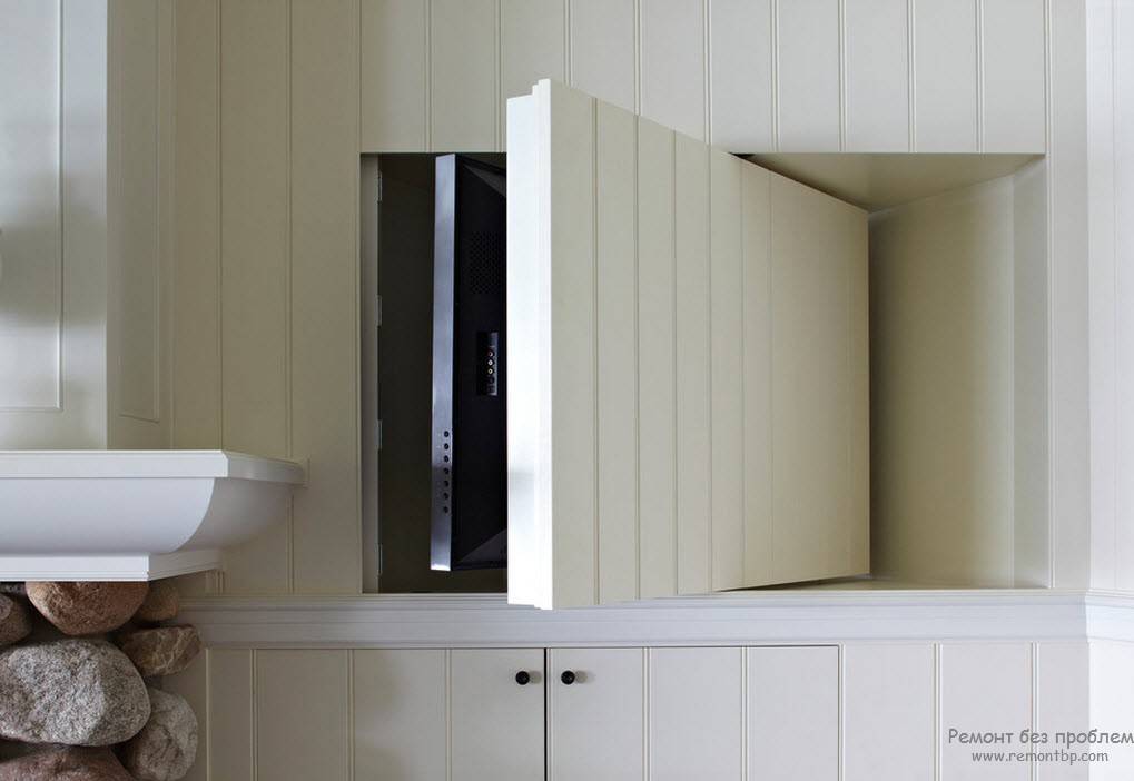 Этими же принципами руководствуются, устанавливая телевизор в шкафу. Данным приемом пользуются семьи, чьи подрастающие дети находятся дома, пока родители работают.