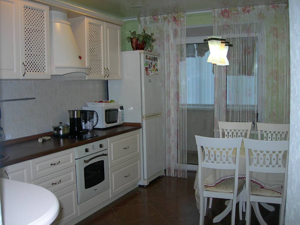 Сияющая белизной кухня выглядит дорого и респектабельно. Такой интерьер снабжен рядом неоспоримых преимуществ: используя белый цвет, можно значительно расширить пространство в зрительном плане. Это поможет сделать просторной даже самую крошечную кухоньку.