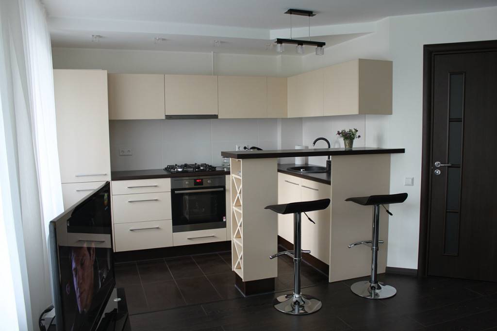 Рассмотрим цветовые варианты отделки кухни, которые выгоднее всего будут гармонировать с темным напольным покрытием. Огромную роль в дизайне играет выбор гарнитура, который должен гармонично вписываться в общий вид функциональной комнаты.
