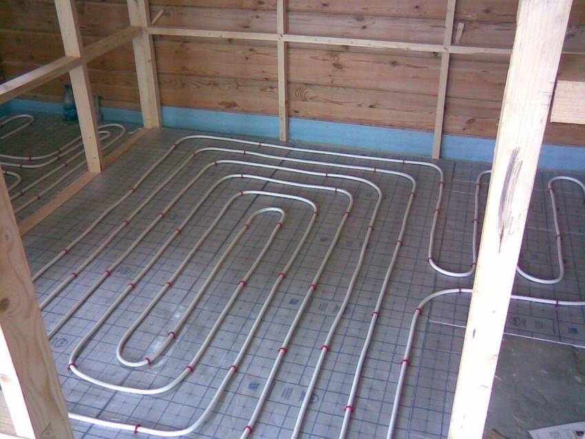 Самостоятельно работы выполняют из легко сгибающихся по размеру металлопластиковых труб, выкладывая их по размеченной сетке. Расстояние до стен выдерживается не менее 0,1 – 0,3 м.