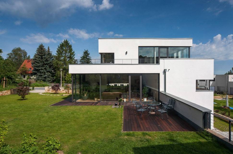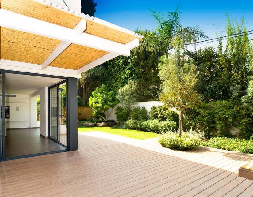 Встроенная терраса имеет общий фундамент с домом