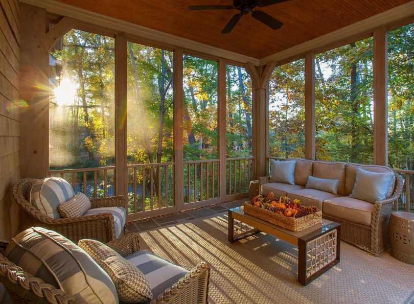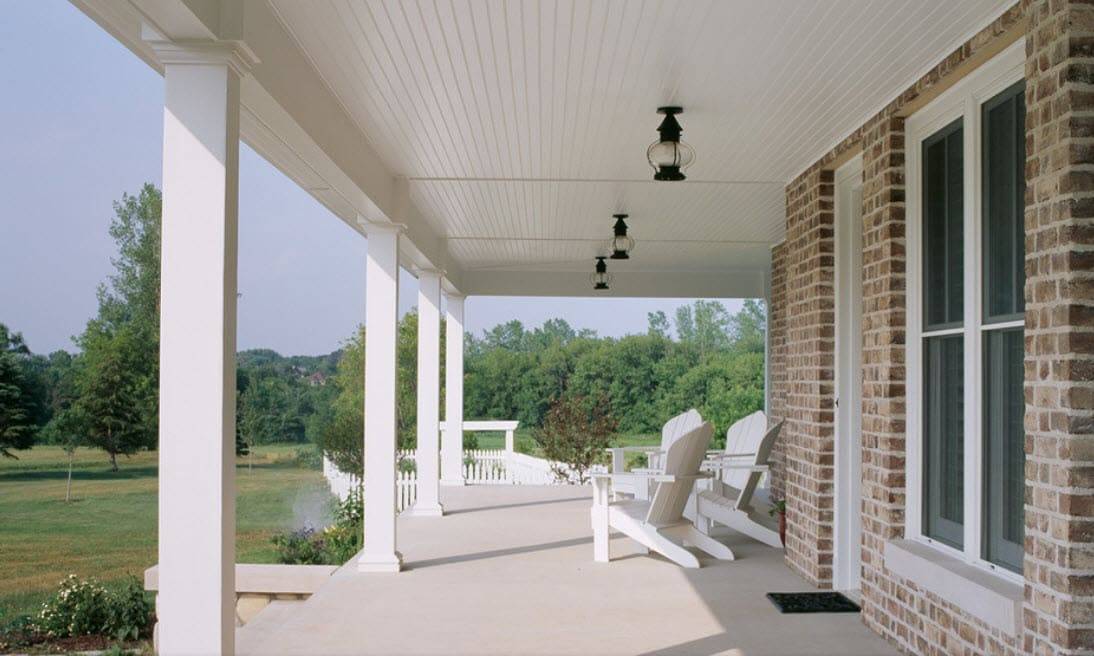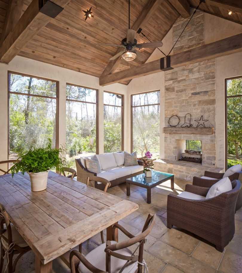 Как правило, веранда строится из того же материала, из которого сделан дом: к кирпичному строению пристраивается терраса из кирпича, к деревянному дому лучше пристроить веранду из бревна или бруса. Однако полагаться на одно лишь соответствие дизайна не стоит. Другим важным критерием при работе, является то, насколько сложным будет строительство веранды.