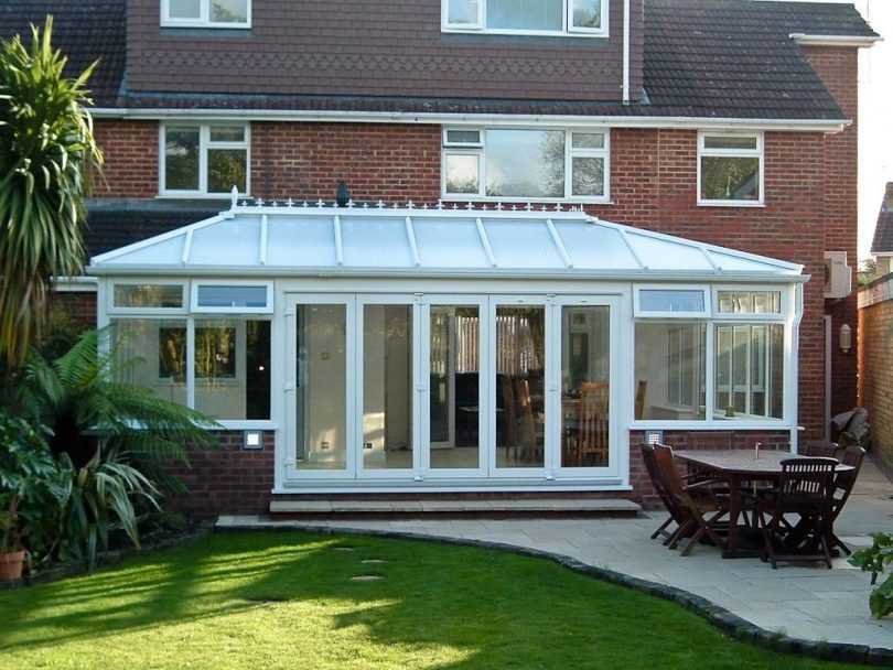 Закрытая терраса с крышей из поликарбоната позволит приятно проводить время даже в холодное время года