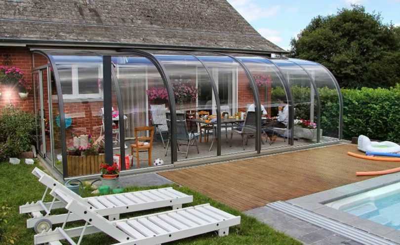 Терраса с мобильной крышей из поликарбоната