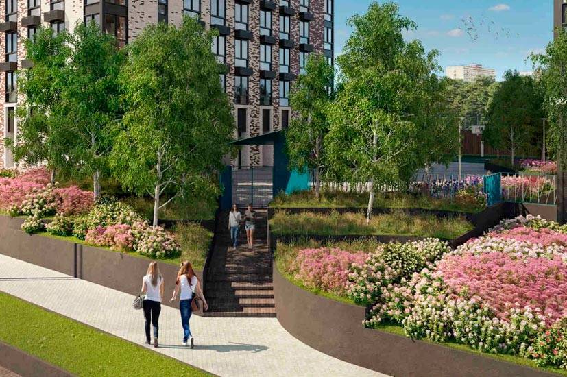 Архитектурную концепцию столичного “Символа”, как ни странно, разрабатывали две британские компании, LDA Design и UHA London. От промышленного прошлого территории они решили уйти с помощью зелёных насаждений. Едва ли не половину всей площади проекта займут деревья, кустарники и газоны, а ещё в “Символе” появится красиво благоустроенный пешеходный бульвар, тоже весь в зелени. Здесь будет приятно просто бывать, ну а уж жить – тем более. Надо только определиться с подходящим домом – они все монолитные и несколько футуристичные, но разные по высоте (7-28 этажей), отделке и другим деталям.
