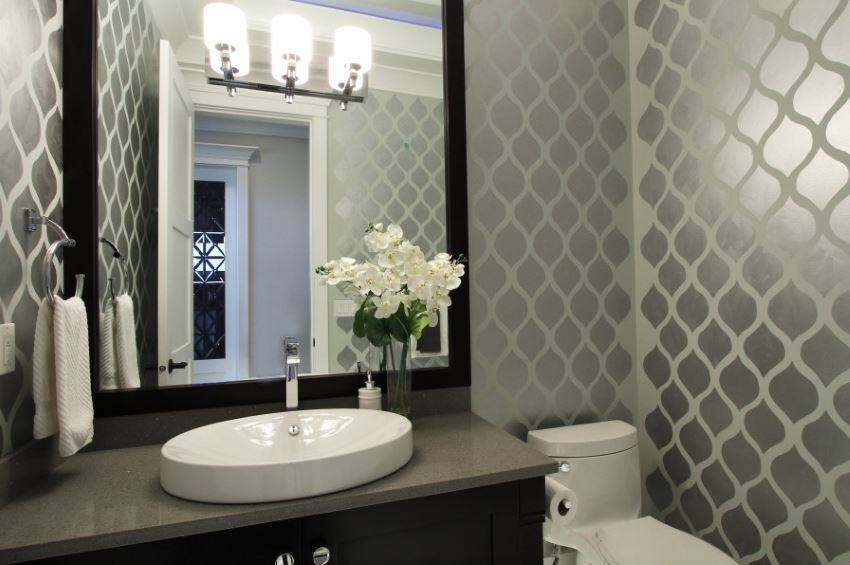Довольно часто в оформлении ванной или других комнат используется бордюр. Он состоит из повторяющегося участка орнамента. В результате получается непрерывный рисунок, который опоясывает помещение. Для этих целей отлично подходят изображения цветов, растений, дельфинов. Получаемый рисунок отличается лаконичностью и сдержанностью. Определиться с выбором рисунка для ванной комнаты помогут фото трафаретов для декора стен. Если же хочется сэкономить время и силы, можно просто купить готовый шаблон в ближайшем магазине отделочных материалов.