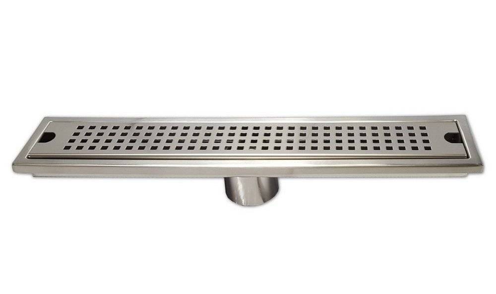 Это традиционный трап квадратной формы. Он отличается небольшими размерами и наличием отверстий, нанесенных по всему периметру декоративной панели. Это компактное устройство, которое можно разместить в любой точке пола кабины. Такие трапы чаще всего устанавливают в центре, обеспечив хороший сток воды. Для этого плитку вокруг него укладывают под наклоном. Подобные элементы могут пригодиться не только в душевой. Их часто устанавливают по центру помещения в качестве дополнительной защиты. В случае аварии они помогут спасти соседей от затопления, а вас от необходимости компенсировать их убытки.