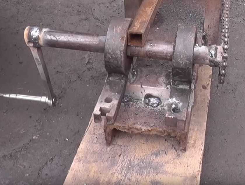 - собрать цепную передачу, используемую для приведения станка в действие, для чего понадобится не только цепь, которую можно позаимствовать, например, со старого мотоцикла, но и три шестерни;