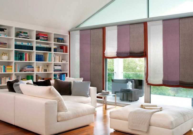 - римские – похожи на рулонные, в собранном виде регулируются по высоте;