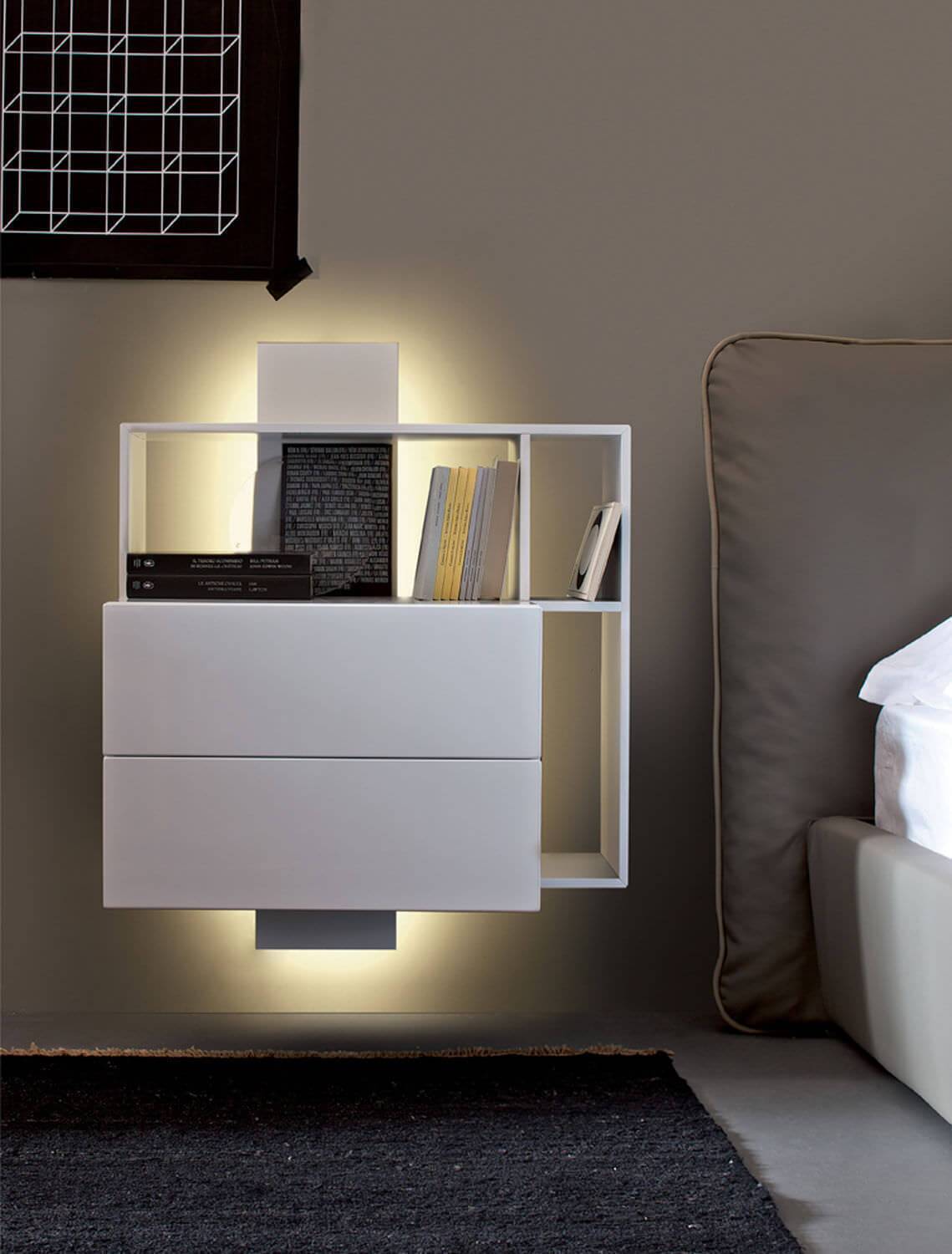 Подвесной вариант подходит в случае небольших моделей с низкой нагрузкой, поэтому важно заранее продумать, что планируется хранить в прикроватной тумбочке
