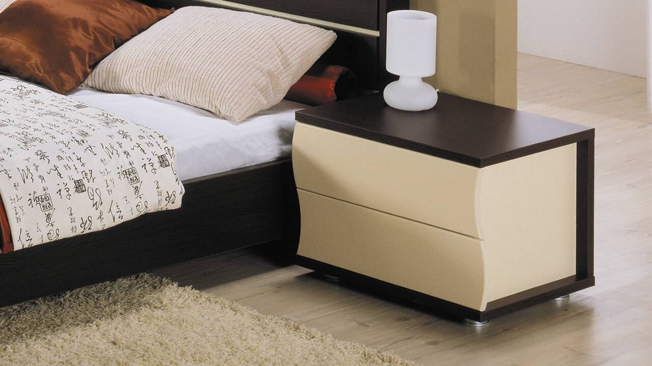 - Цвет тумбочек для кровати полностью соответствует не базовому подтону оформления интерьера спальной комнаты. Мебель цвета венге отменно подходит для этих целей, если вся спальня выдержана в строгом классическом стиле и в ней используются фактуры, наиболее приближенные к натуральной древесине.
