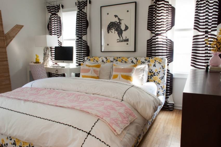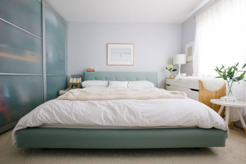 Очень часто спальни бывают маленькими, особенно это характерно для современных домов, где больше места стараются оставить для кухни или гостиной. Если у вас небольшая комната, рассмотрите варианты эффективного использования пространства и способы визуально расширить его. Прежде всего вы должны выбирать светлые цвета. Они делают комнату визуально больше.