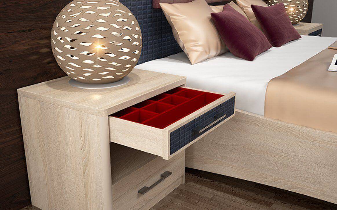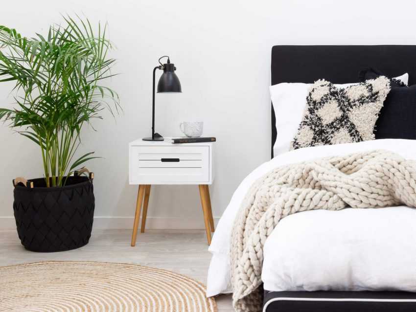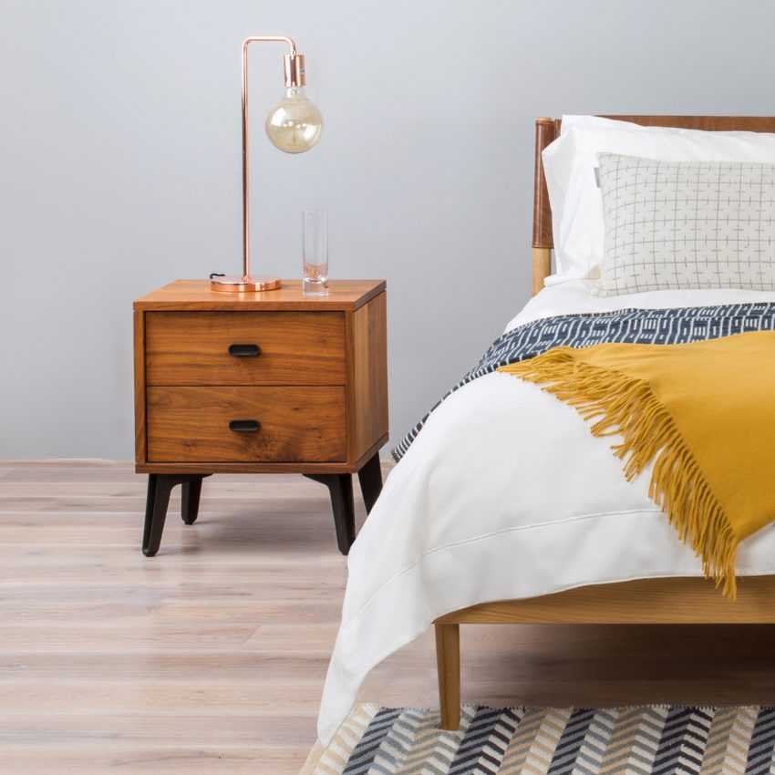 Рассмотрите пространство, которое у вас есть. Небольшая комната может выглядеть задушенной гигантскими деревянными прикроватными изделиями. В этом случае рассмотрите более тонкие кусочки без ящиков.