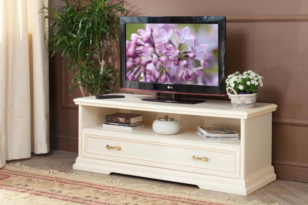 При выборе тумбочки под телевизор стоит также принять во внимание стиль оформления помещения, в котором мебель будет располагаться: