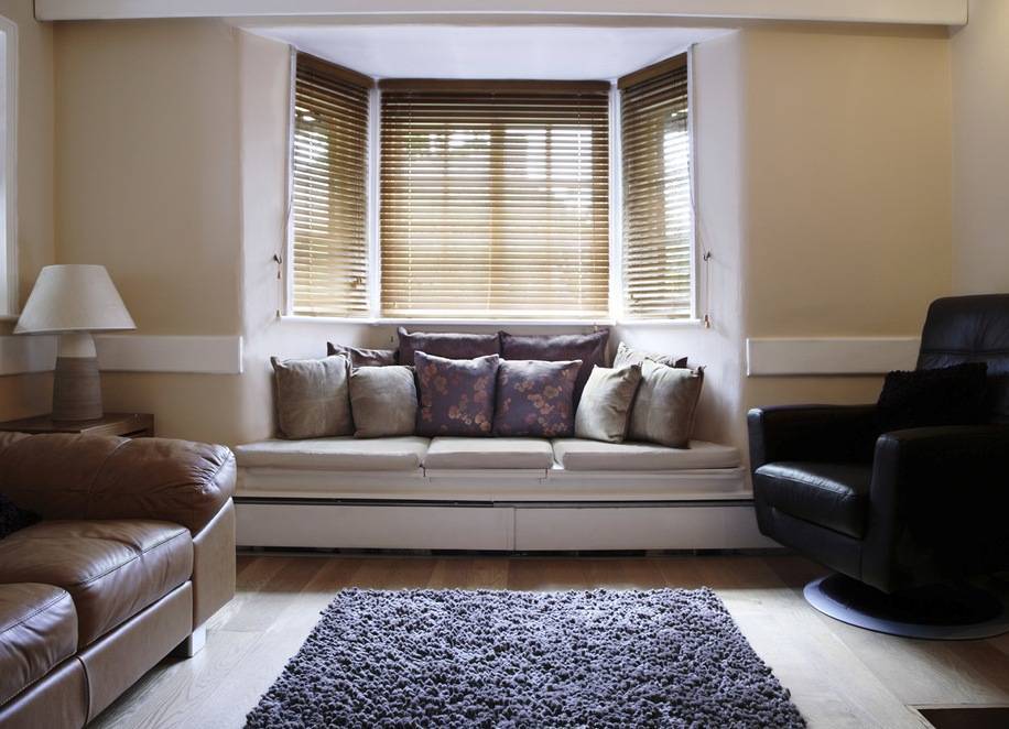 Если окно эркерное, то чтобы установить возле него диван, придётся заказывать его по индивидуальным размерам.