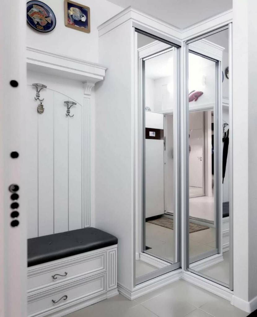 При выборе угловых прихожих в коридор малогабаритных квартир учитывают расположение входной двери. Выбирают модели из ЛДСП, МДФ, уместна пластиковая отделка. Шкафы выбирают с раздвижными дверцами. Предпочтительнее функциональные угловые модели. В небольших коридорах используют подпотолочное пространство, закрепляют антресоли открытого или закрытого типа. Обувницы выбирают сетчатые с экономичными наклонными полками с бортиками.