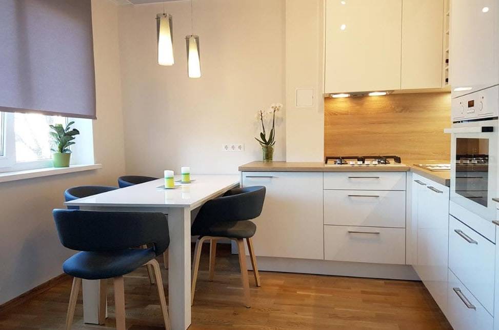 Доступность мебели. Ввиду того, что угловые кухни — это, чаще всего, компактные комнатки, где мебель расположена близко друг к другу, все инструменты довольно доступны и можно довольно быстро найти нужный элемент техники, если он потребуется. Это сократит движение по кухне, не будет создавать лишнюю суету.