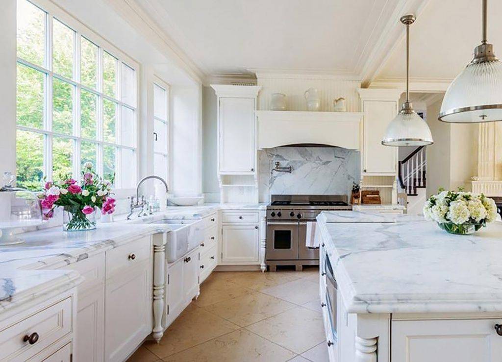 Даже если вы решите использовать преимущественно белый цвет, не забывайте, что для кухни в стиле светлой классики моноцветность не характерна. Придется добавлять акценты: например, бежевый или золотой тон.