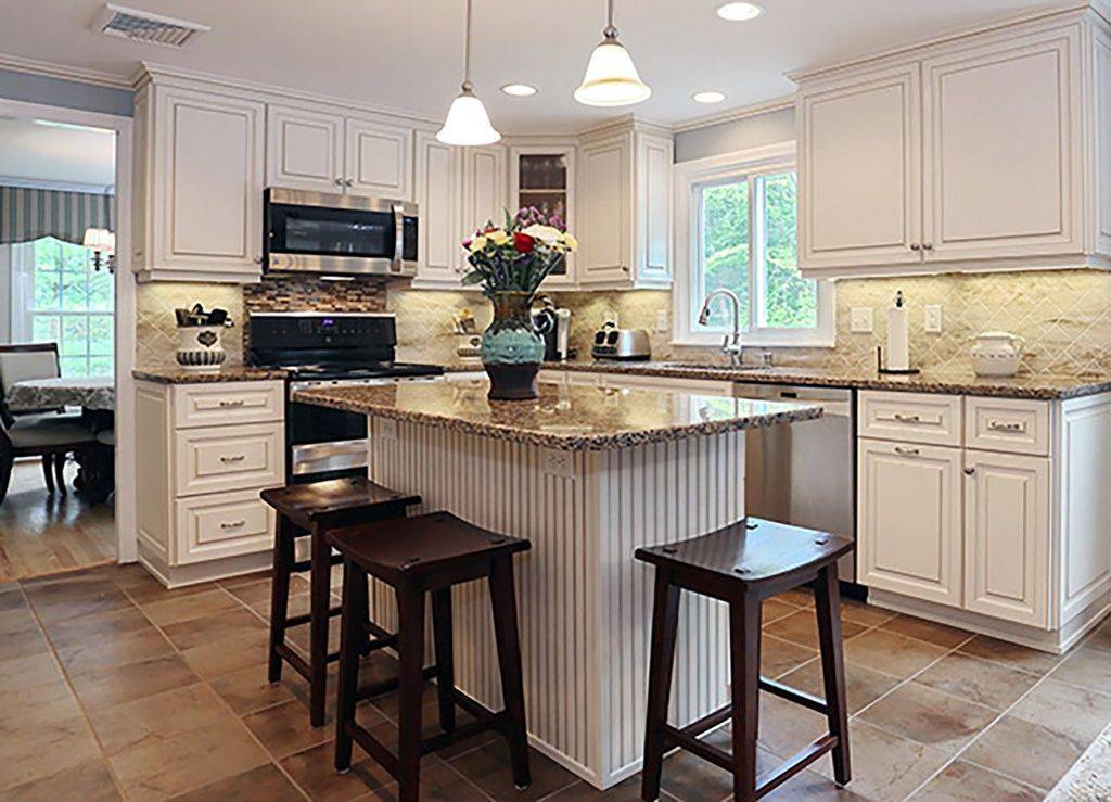 - Расположение кухонного гарнитура вдоль двух смежных стен с вариациями является оптимальным вариантом для размещения всех необходимых компонентов.