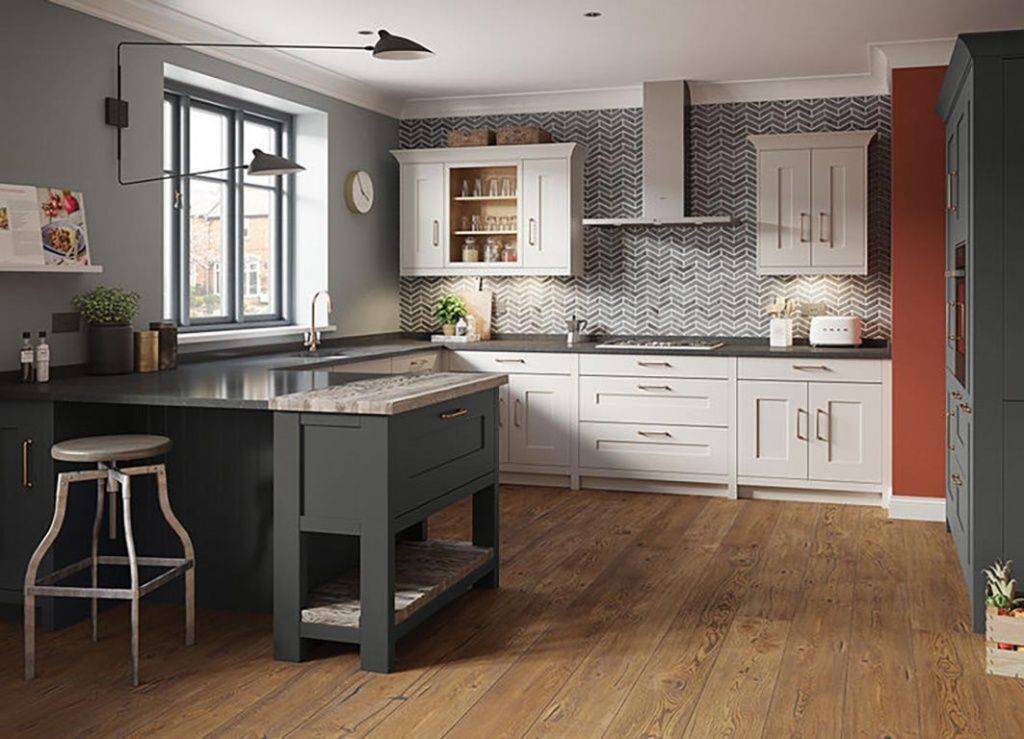 По сути — это комбинация первого с добавлением «полуострова. Логично, что такое решение потребует от кухни простора, как по площади, так и по объему.