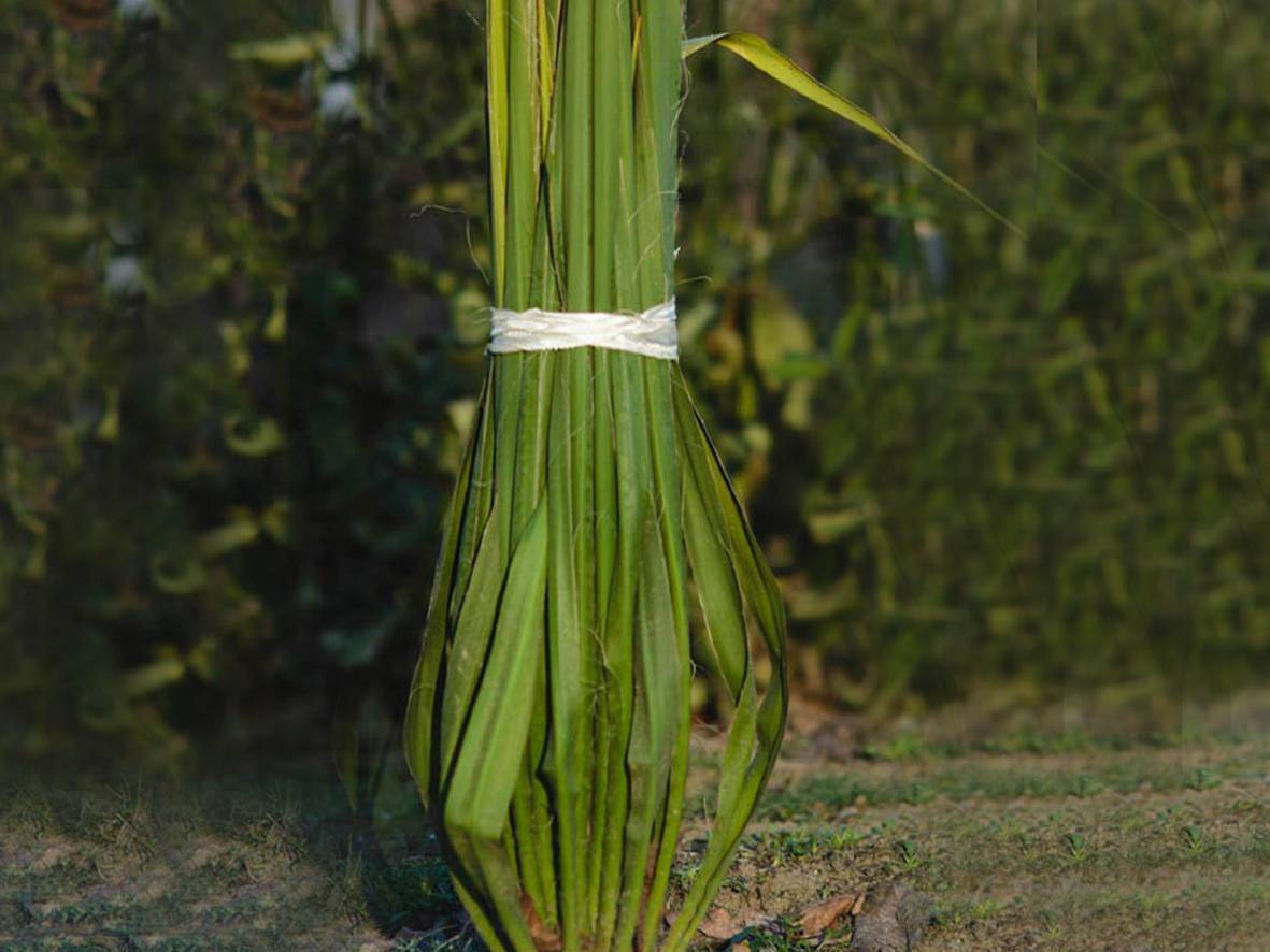 - Листья собрать в пучок и обвязать веревкой по всей длине. При этом несколько нижних листочков требуется оставить и разложить их по почве. Вокруг ствола растения требуется насыпать сухие листья, а на них выложить дощечки или палки. Это необходимо для того, чтобы ветер не сдул листья. Ствол у основания нужно также присыпать грунтом. Сверху юкку накрыть полиэтиленовой пленкой.