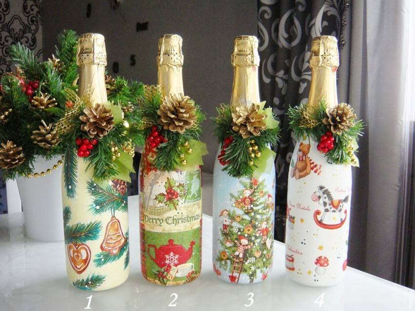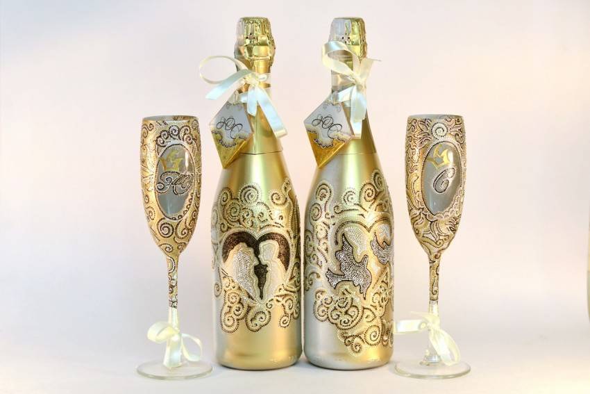 Как видите, вариантов оформления шампанского действительно много. Это только малая часть того, что можно выполнить своими руками. Решать вам – воспользоваться готовыми идеями и мастер-классами или придумать свой, неповторимый дизайн.