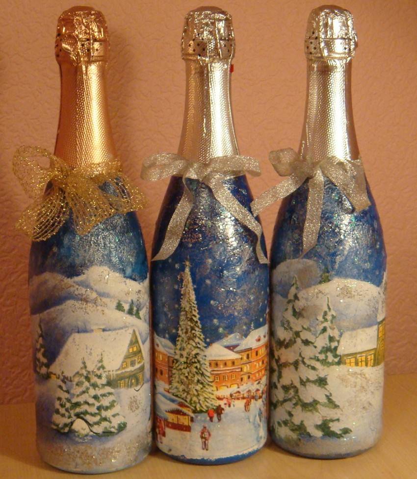 Востребованной техникой декорирования бутылок является декупаж. Посетите мастер класс по декупажу и вы оцените технику сполна.