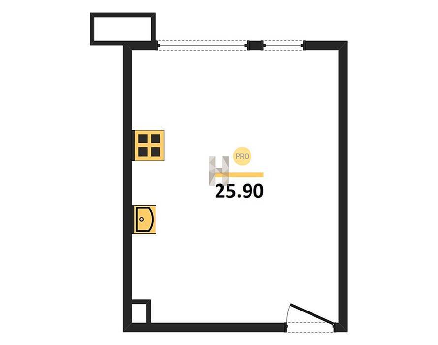 Наименьший метраж в продаже от застройщика – студия 25,9 кв. м, ее стоимость – от 2,6 млн рублей. Квартира расположена на первом этаже во второй секции в корпусе №3.