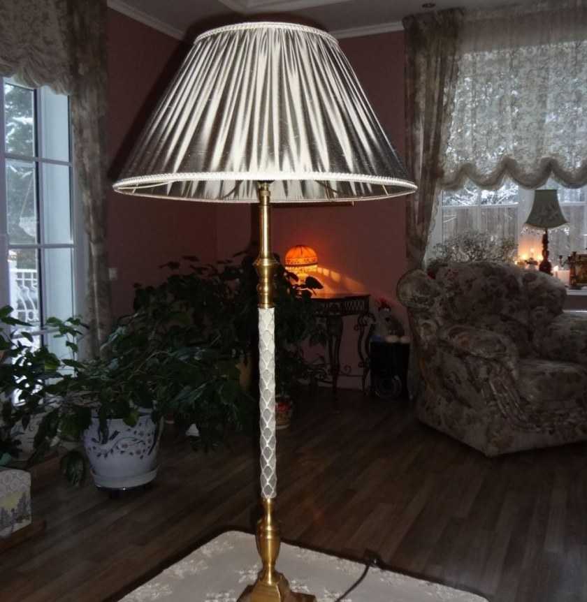 Изготовив каркас, можно переходить к задаче как сделать абажур для торшера своими руками. Здесь беспроигрышным материалом послужит ткань. Дело в том, что текстиль: