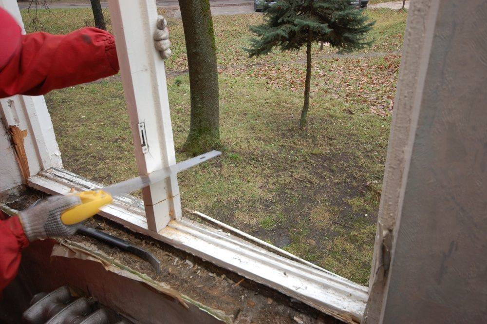 Установка нового окна подразумевает демонтаж старых конструкций. Если прежние оконные системы не предполагают использовать на даче или в хозпостройках, стекла снимают, а рамы распиливают.