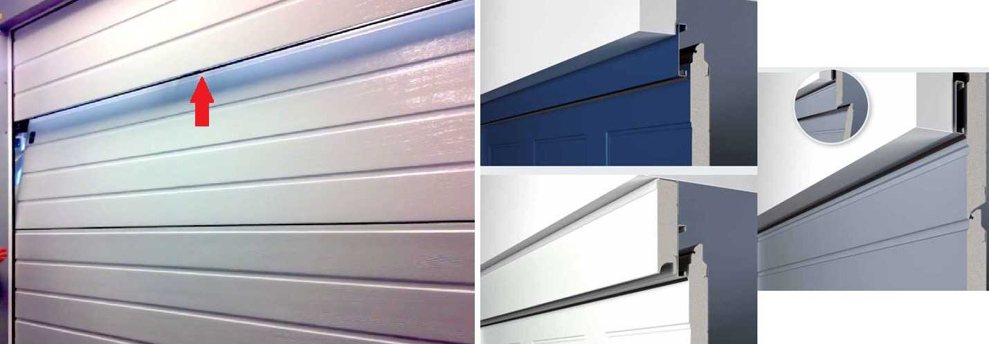 - Последней укладывается верхняя панель. Она обеспечивает достаточно плотное прилегание ворот к нащельнику.
