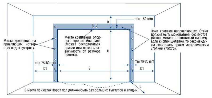 - Необходимости наличия свободной площади для выполнения рабочего цикла при открывании ворот.