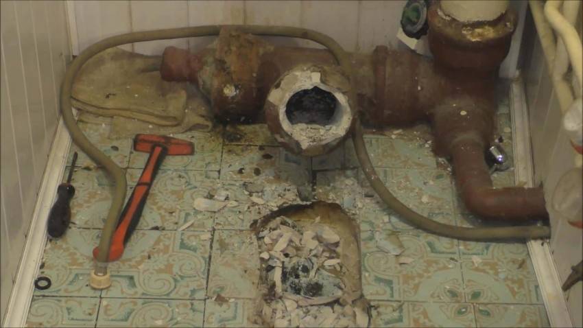 если унитаз не нужен, просто сильно ударяйте под чашей, после разбития трубы демонтаж выполнить очень просто.