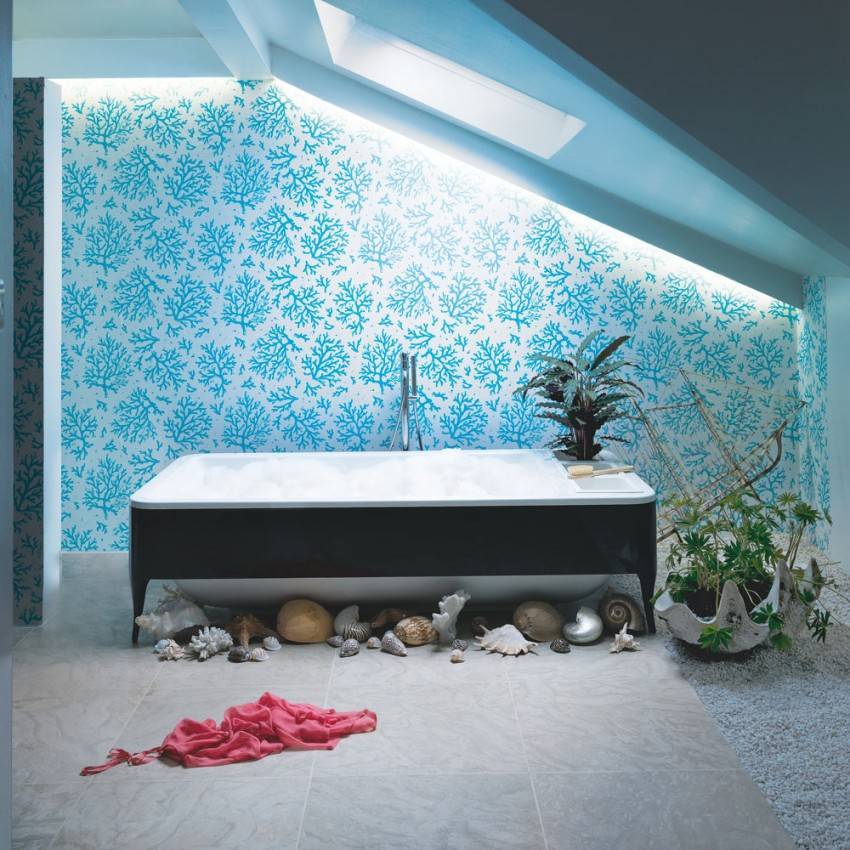 - виниловые обои, предназначенные специально для ванных комнат с большим выбором рисунков данной тематике.