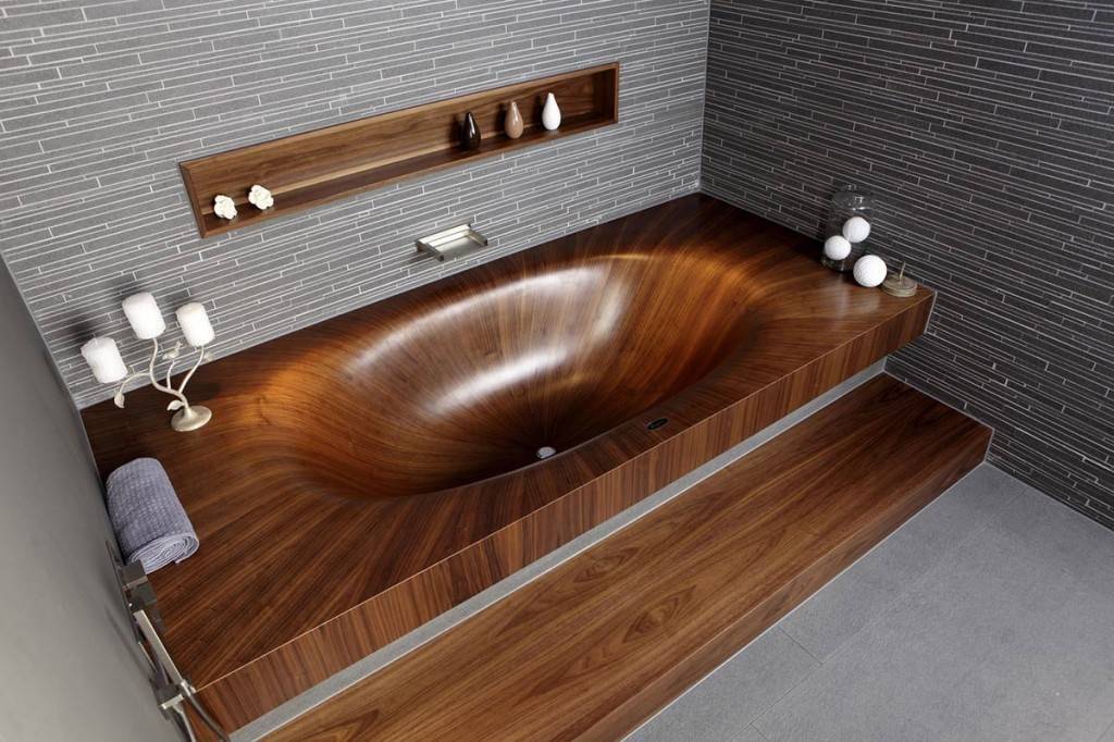 Деревянная ванна — интересный вариант для дизайна ванной комнаты