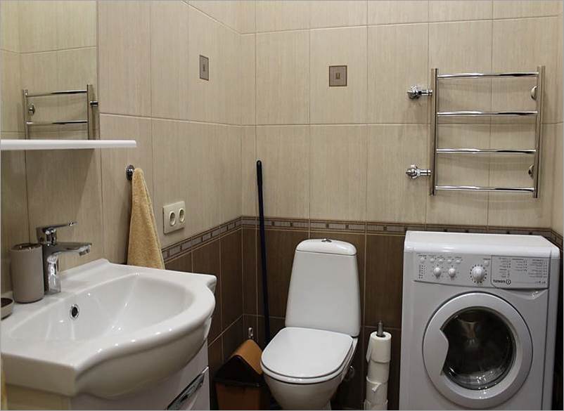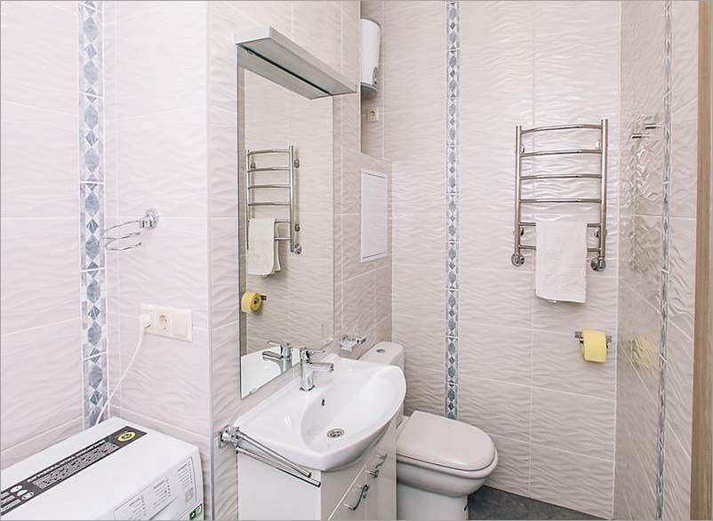Даже на небольшой площади, при правильной ее планировке, можно вписать не только всю необходимую сантехнику, но и современные бытовые приборы, например, стиральную машинку.