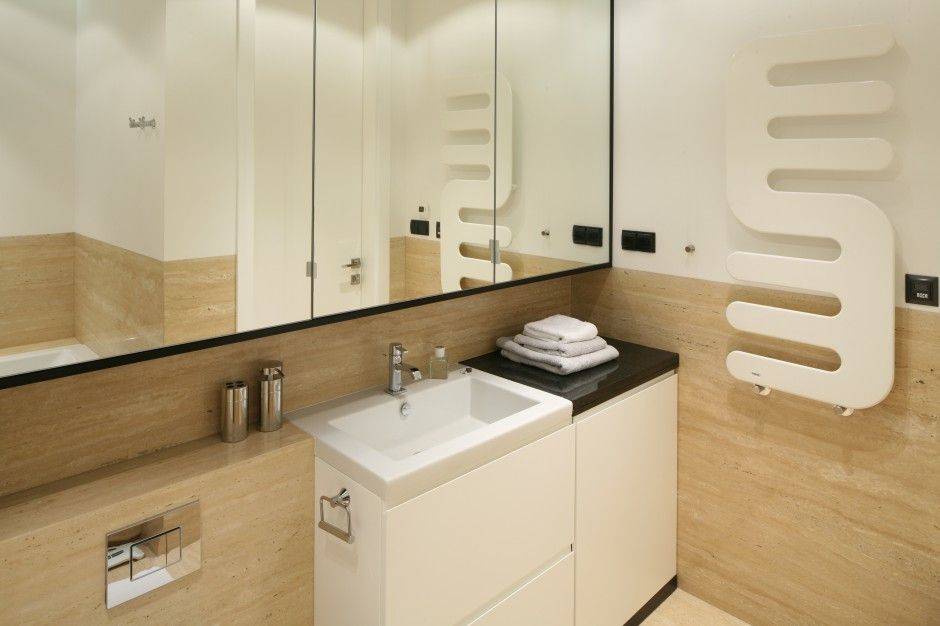 Помните, что чем меньше помещение ванной комнаты, тем большим в ней должно быть преобладание светлого оттенка, то есть, бежевого. Процентное соотношение этих двух цветов будет напрямую зависеть от размеров комнаты.
